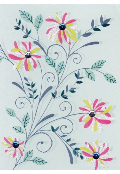 Product Details: 8 note cards with foil, glitter, sequins, 9 beige envelopes, in coloured box with clear cover.